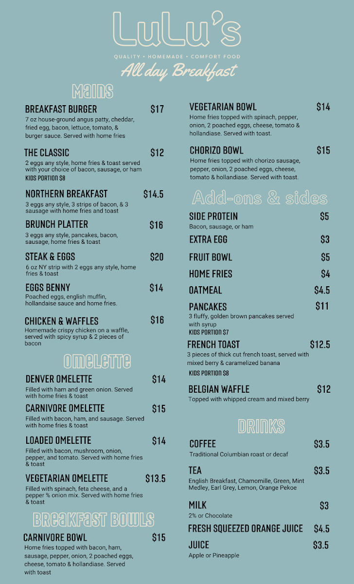 Lulu's Kitchen Menu